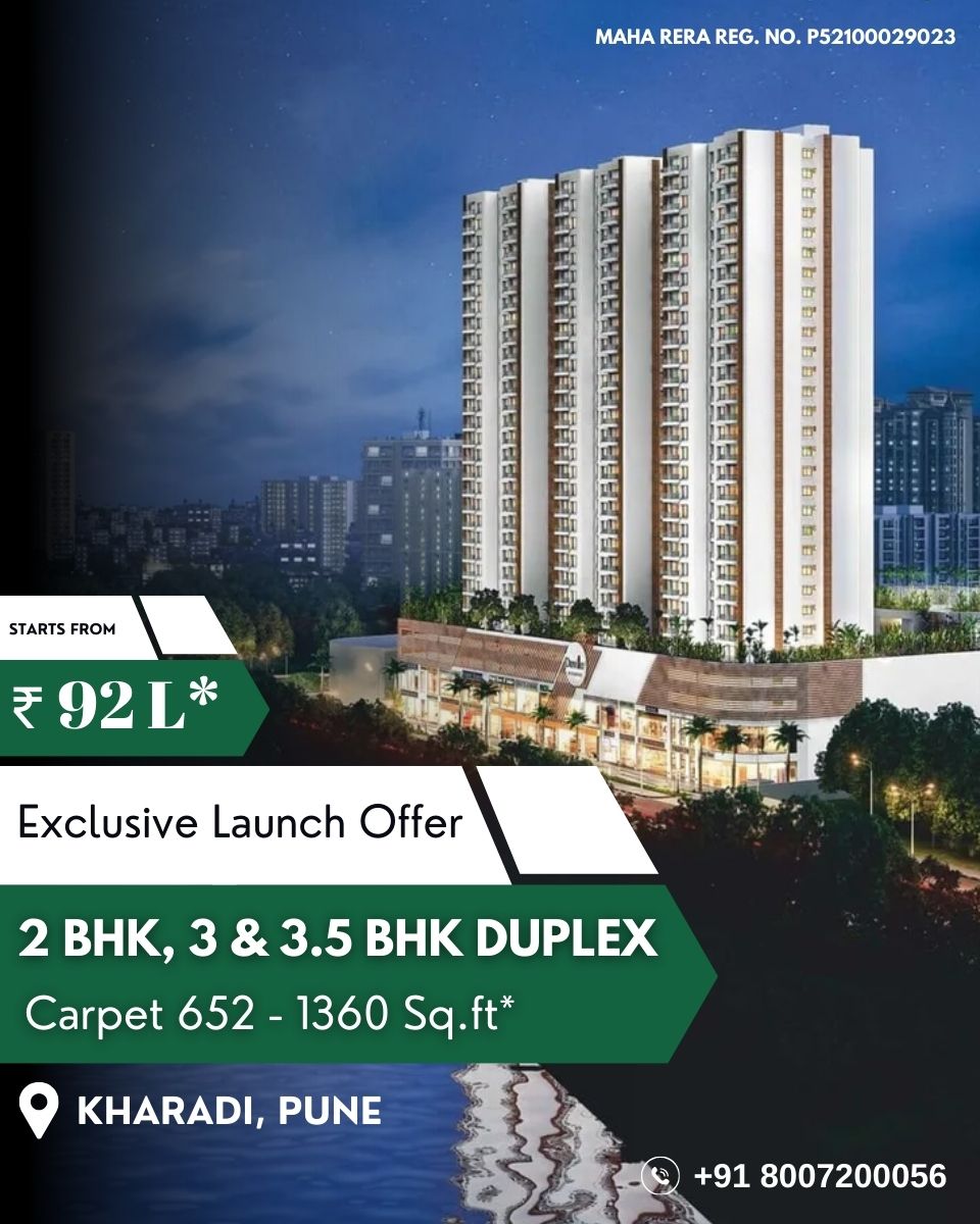 Disclaimer:Â All the designs, images, specifications and other details are purely indicative in nature and the intended recipient should note that these are to be treated as purely provisional and informative and as such only. We reserve the right to modify / amend / alter any of the aforesaid in the best interest of the development and as per RERA regulations. The contents herein should not be construed as an offer / invitation to offer / contract. This printed material inter alia images, contents therein are for representative purpose only. Any party desirous / interested in the project needs to enter in to an Agreement to Sale. This website belongs to authorised channel partner and Agent with Maha Rera Reg. No. A52100004528.